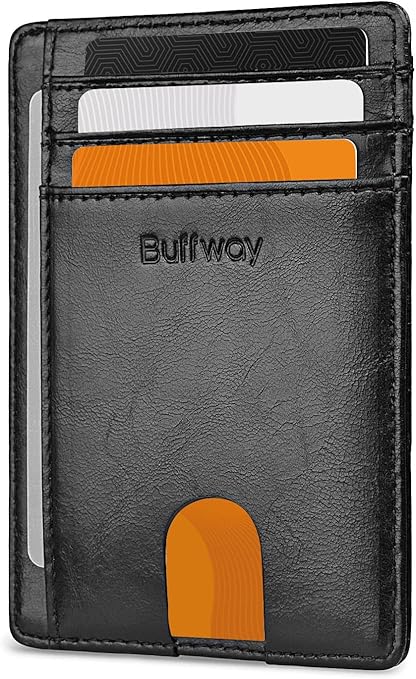 Buffway Slim Wallet for Men & Women – RFID Blocking Minimalist Leather with Money Slots, Includes Gift Box